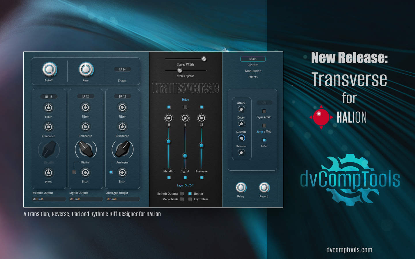 dvCompTools developed Tranverse as a crucial instrument for HALion and HALion Sonic. Transverse creates rhythmic, suspenseful cues, abstract gated rhythms, pads, featuring a powerful granular synth, user sample playback and a wide range of modulation options.